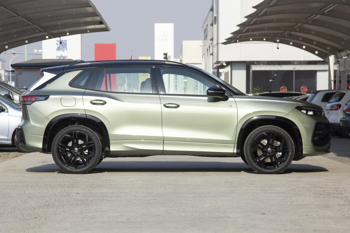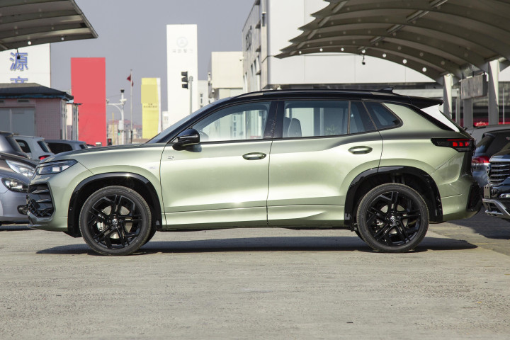 来到车侧,新车腰线在后车门有一个上挑的设计,轮圈的样式符合大众风格,侧裙也加入了银色装饰,车顶提供行李架。车身尺寸方面,新车长宽高分别为4684/1854/1685mm,轴距为2791mm,相比现款探岳车长增加91mm,车宽减少6mm,车高增加20mm,轴距增加60mm。